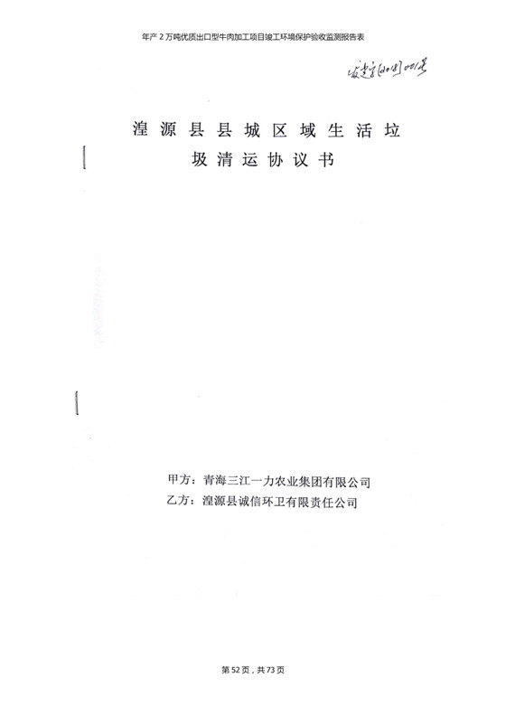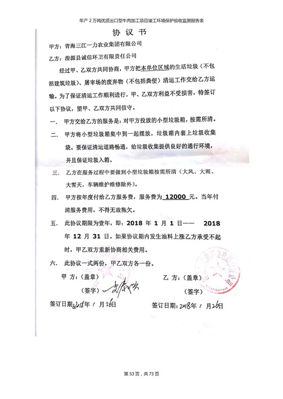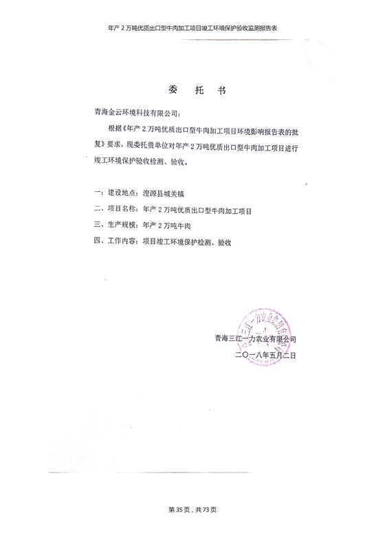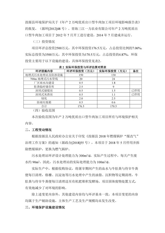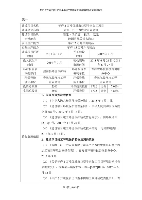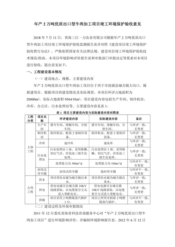 2018年7月11日,青海三江一力農(nóng)業(yè)有限公司組織召開年產(chǎn)2萬(wàn)噸優(yōu)質(zhì)出口型牛肉加工項(xiàng)目竣工環(huán)境保護(hù)驗(yàn)收會(huì)。