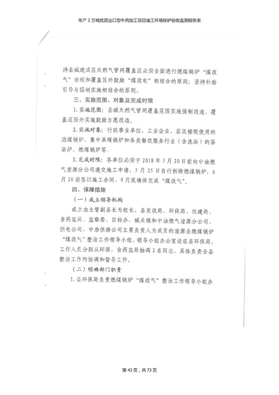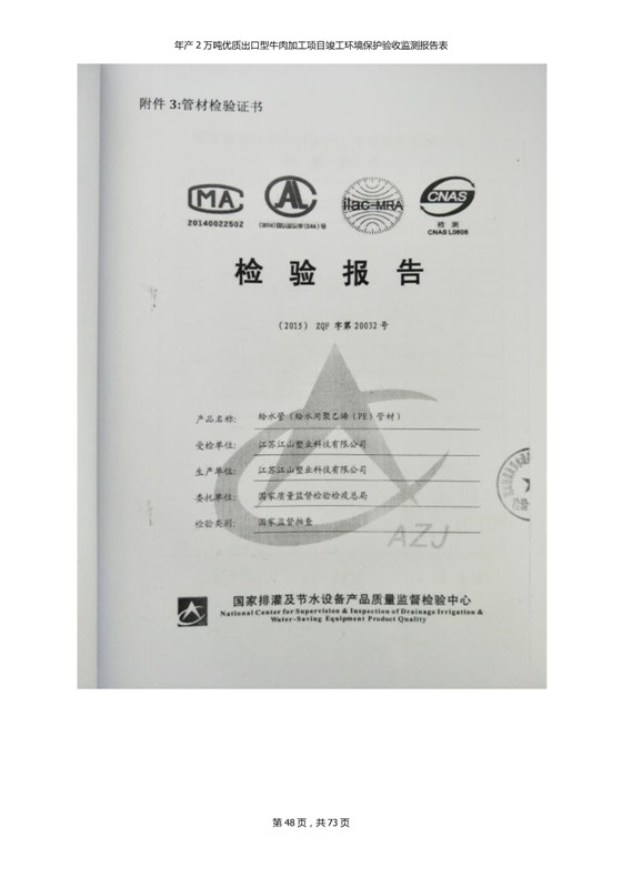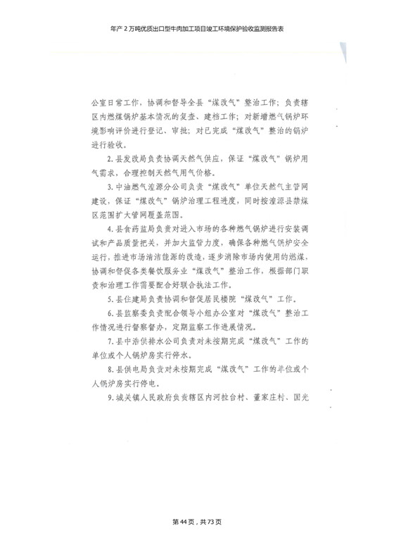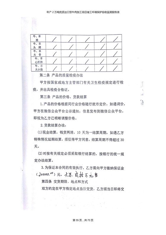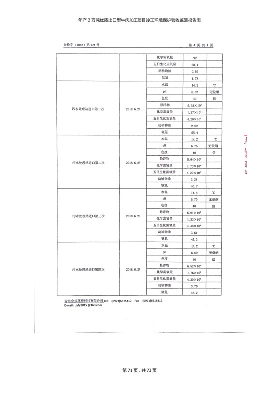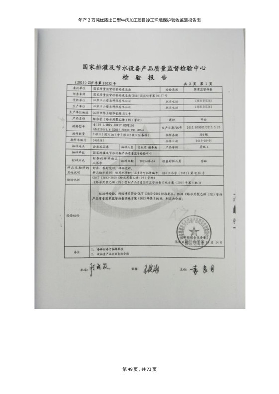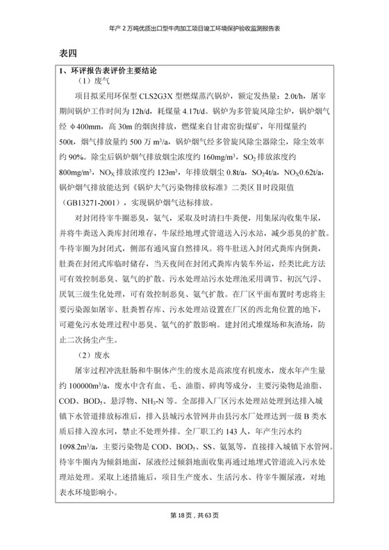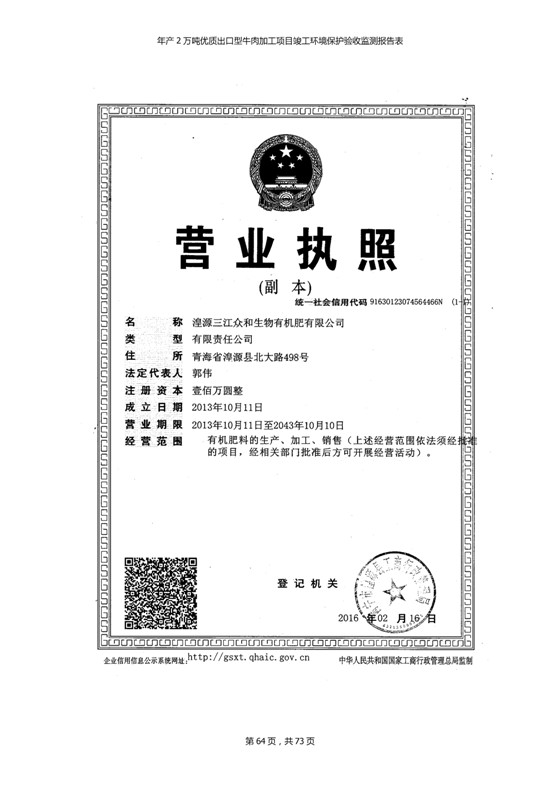 根據(jù)中華人民共和國(guó)國(guó)務(wù)院令第253號(hào)《建設(shè)項(xiàng)目環(huán)境保護(hù)管理?xiàng)l例》(中華人民共和國(guó)國(guó)務(wù)院令第682號(hào)《國(guó)務(wù)院關(guān)于修改〈建設(shè)項(xiàng)目環(huán)境保護(hù)管理?xiàng)l例〉的決定》和《建設(shè)項(xiàng)目竣工環(huán)境保護(hù)驗(yàn)收暫行辦法》,嚴(yán)格依照有關(guān)法律法規(guī),建設(shè)項(xiàng)目環(huán)境保護(hù)設(shè)施驗(yàn)收技術(shù)規(guī)范,本項(xiàng)目環(huán)評(píng)報(bào)告表和環(huán)保審批部門審批意見以及企業(yè)自行驗(yàn)收相關(guān)要求等對(duì)本項(xiàng)目進(jìn)行驗(yàn)收,本項(xiàng)目符合環(huán)保驗(yàn)收條件,可以通過(guò)環(huán)保驗(yàn)收。 青海三江一力農(nóng)業(yè)有限公司組織召開年產(chǎn)2萬(wàn)噸優(yōu)質(zhì)出口型牛肉加工項(xiàng)目(一期工程)驗(yàn)收組意見.