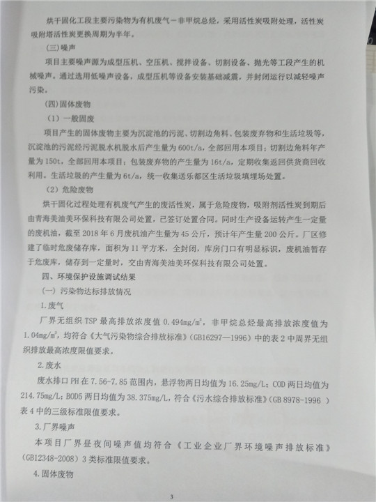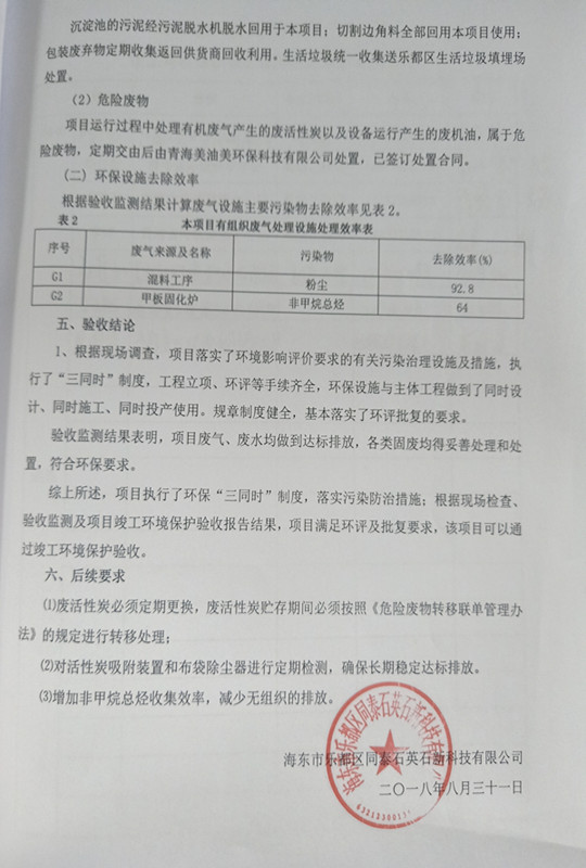 根據(jù)中華人民共和國國務(wù)院令第253號《建設(shè)項(xiàng)目環(huán)境保護(hù)管理?xiàng)l例》(中華人民共和國國務(wù)院令第682號《國務(wù)院關(guān)于修改〈建設(shè)項(xiàng)目環(huán)境保護(hù)管理?xiàng)l例〉的決定》和《建設(shè)項(xiàng)目竣工環(huán)境保護(hù)驗(yàn)收暫行辦法》,嚴(yán)格依照有關(guān)法律法規(guī),建設(shè)項(xiàng)目環(huán)境保護(hù)設(shè)施驗(yàn)收技術(shù)規(guī)范,本項(xiàng)目環(huán)評報(bào)告表和環(huán)保審批部門審批意見以及企業(yè)自行驗(yàn)收相關(guān)要求等對本項(xiàng)目進(jìn)行驗(yàn)收,本項(xiàng)目符合環(huán)保驗(yàn)收條件,可以通過環(huán)保驗(yàn)收。 海東市樂都區(qū)同泰科技有限公司竣工環(huán)境保護(hù)驗(yàn)收監(jiān)測報(bào)告公示