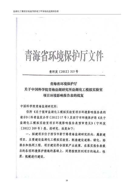 中國科學(xué)院青海鹽湖研究所鹽湖化工模擬實(shí)驗(yàn)室項目竣工環(huán)境保護(hù)驗(yàn)收監(jiān)測報告表公示發(fā)布日期:(2018-11-23) 點(diǎn)擊次數(shù):2254 |