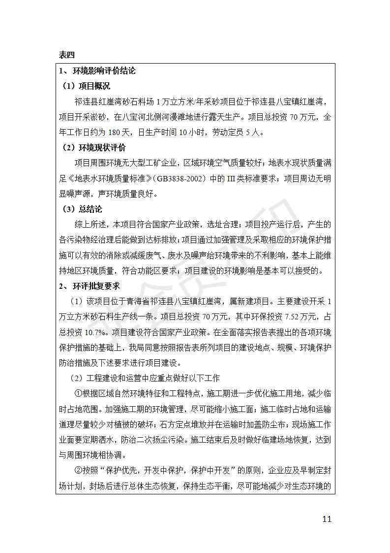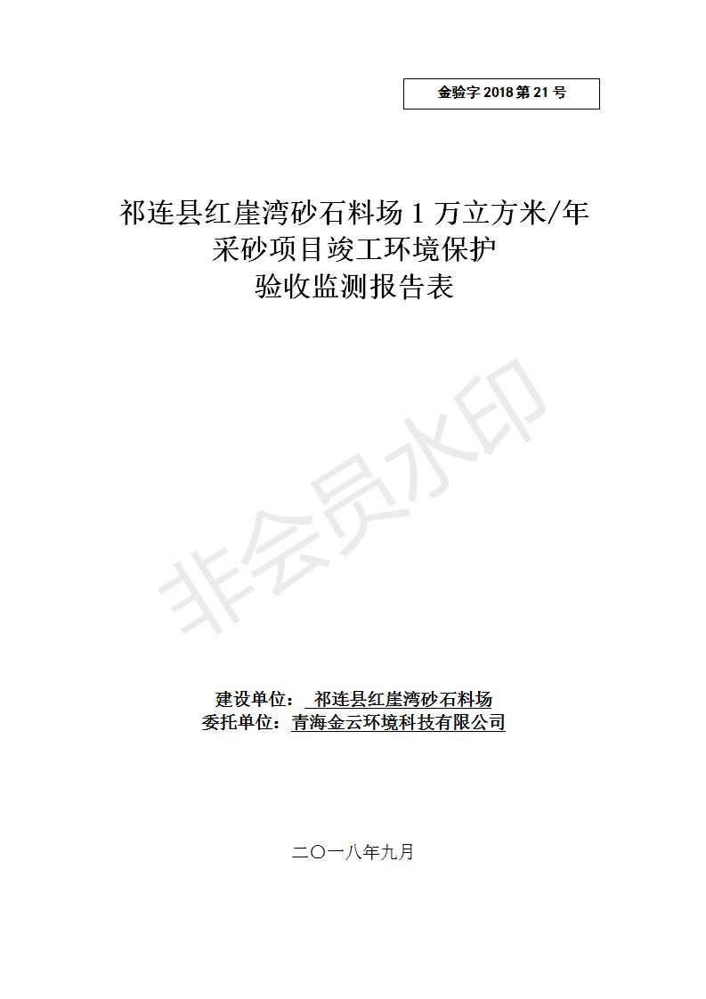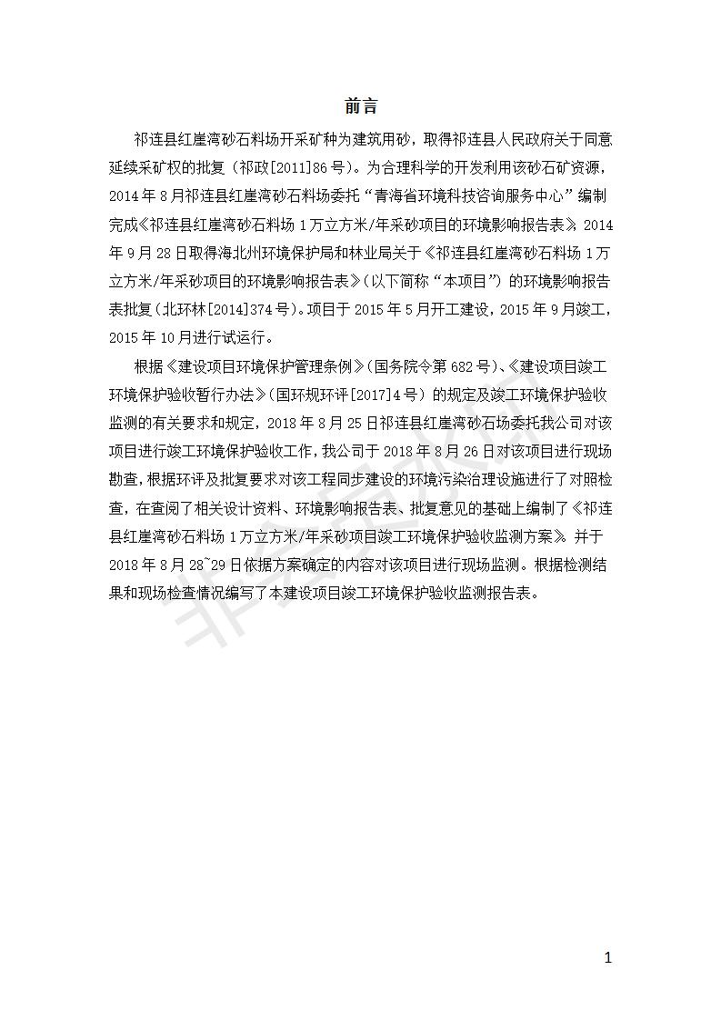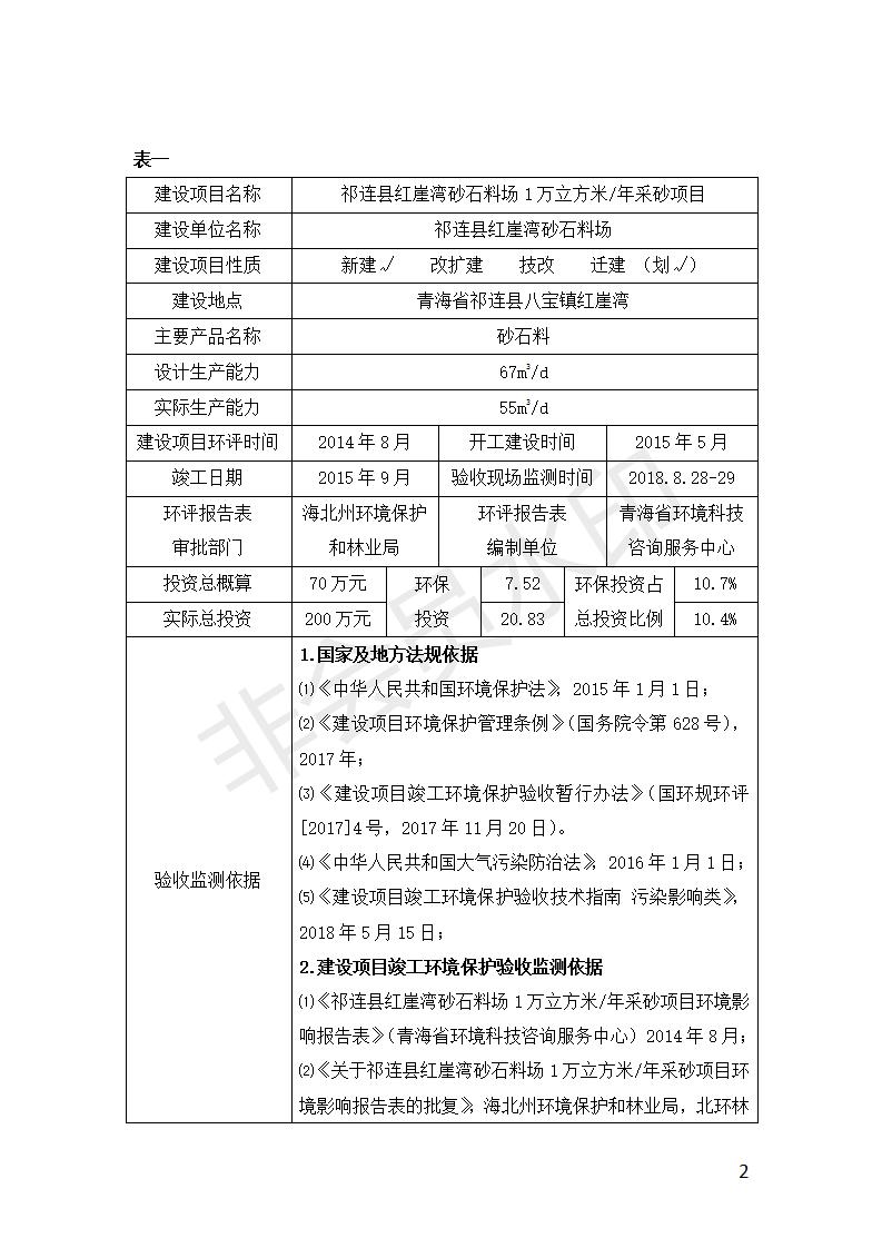 祁連縣紅崖灣砂石料場1萬立方米/年采砂項(xiàng)目竣工環(huán)境保護(hù)驗(yàn)收監(jiān)測(cè)報(bào)告表公示