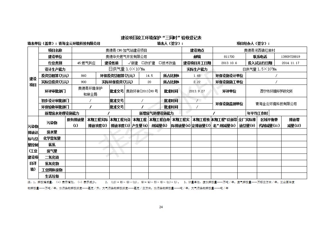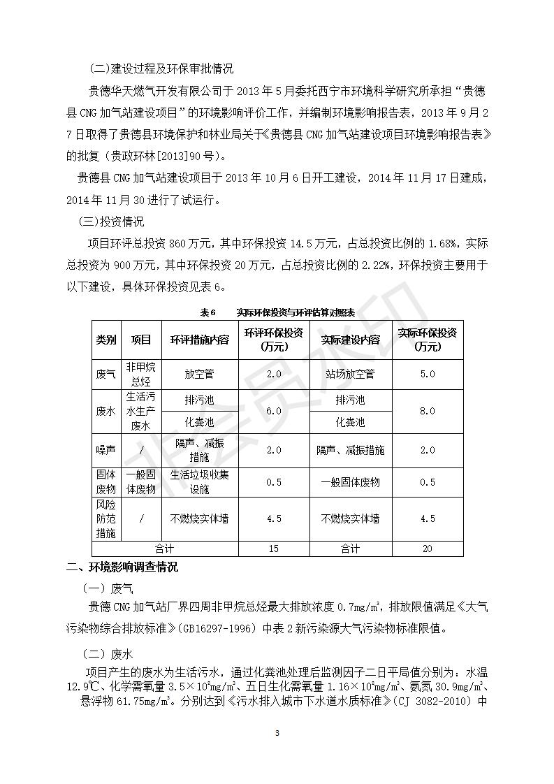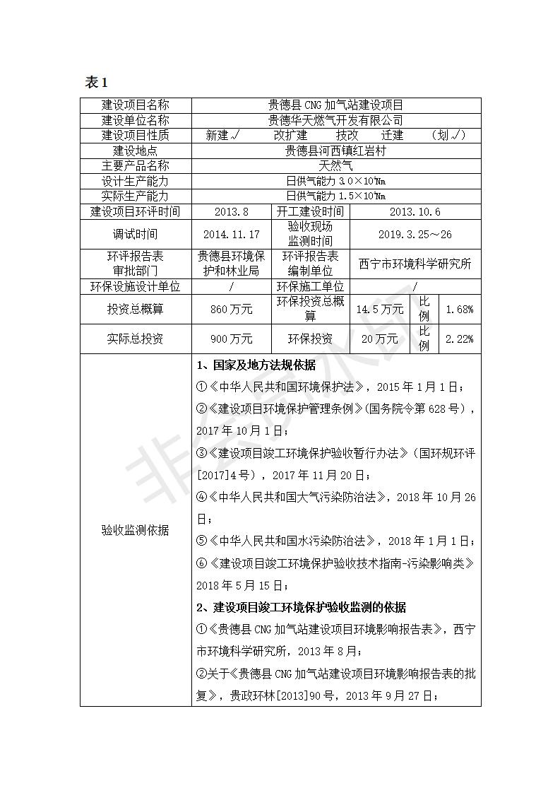 根據中華人民共和國務院令第682號《國務院關于修改〈建設項目環(huán)境保護管理條例〉的決定》和《建設項目竣工環(huán)境保護驗收暫行辦法》(國務院令682號),青藏高原特色生物資源綠色開發(fā)工程研究中心建設項目竣工環(huán)境保護驗收內容(包括竣工環(huán)境保護驗收調查報告和驗收意見)公示如下: 一、項目名稱:貴德縣CNG加氣站建設項目 二、地點:貴德縣河西鎮(zhèn)紅巖村 三、建設單位:貴德華天燃氣開發(fā)有限公司 四、建設內容:日供氣量為1.5×104Nm的加氣站 五、公示時間:二〇一九年五月二十九日至二〇一九年六月二十五日 六、聯(lián)系人:張工 公示期間,對上述公示內容如有異議,請以書面形式反饋,個人須署真實姓名,單位須加蓋公章。