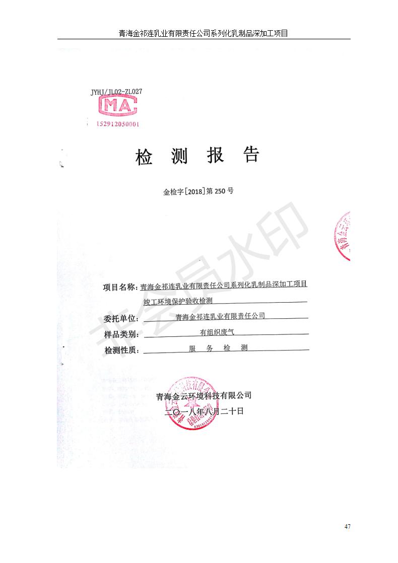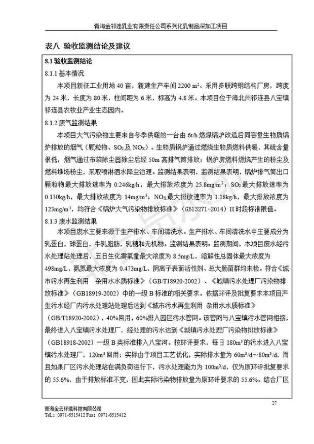 青海金祁連乳業(yè)有限責(zé)任公司系列化乳制品深加工項(xiàng)目竣工環(huán)境保護(hù)驗(yàn)收監(jiān)測(cè)報(bào)告表公示發(fā)布日期:(2019-7-10) 點(diǎn)擊次數(shù):2297 |