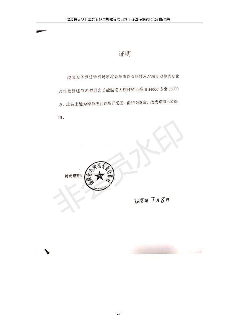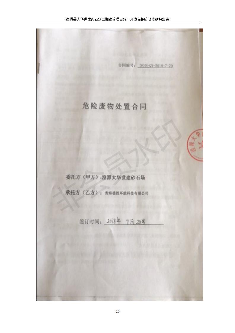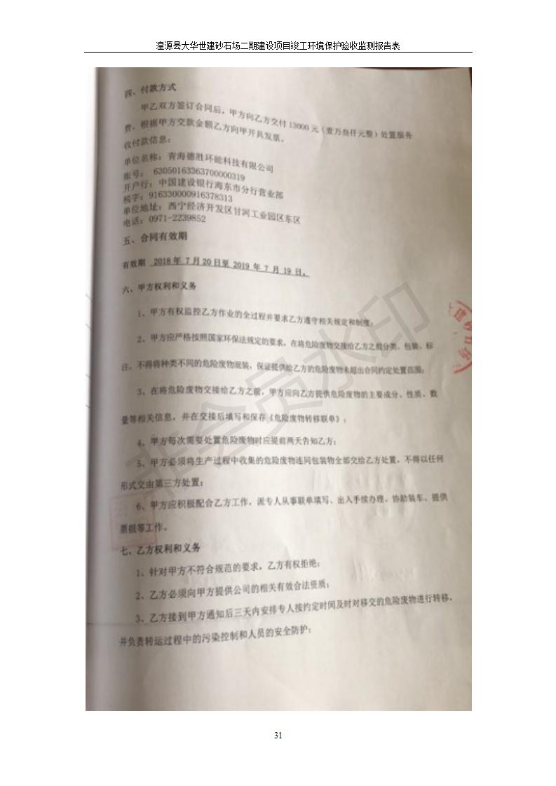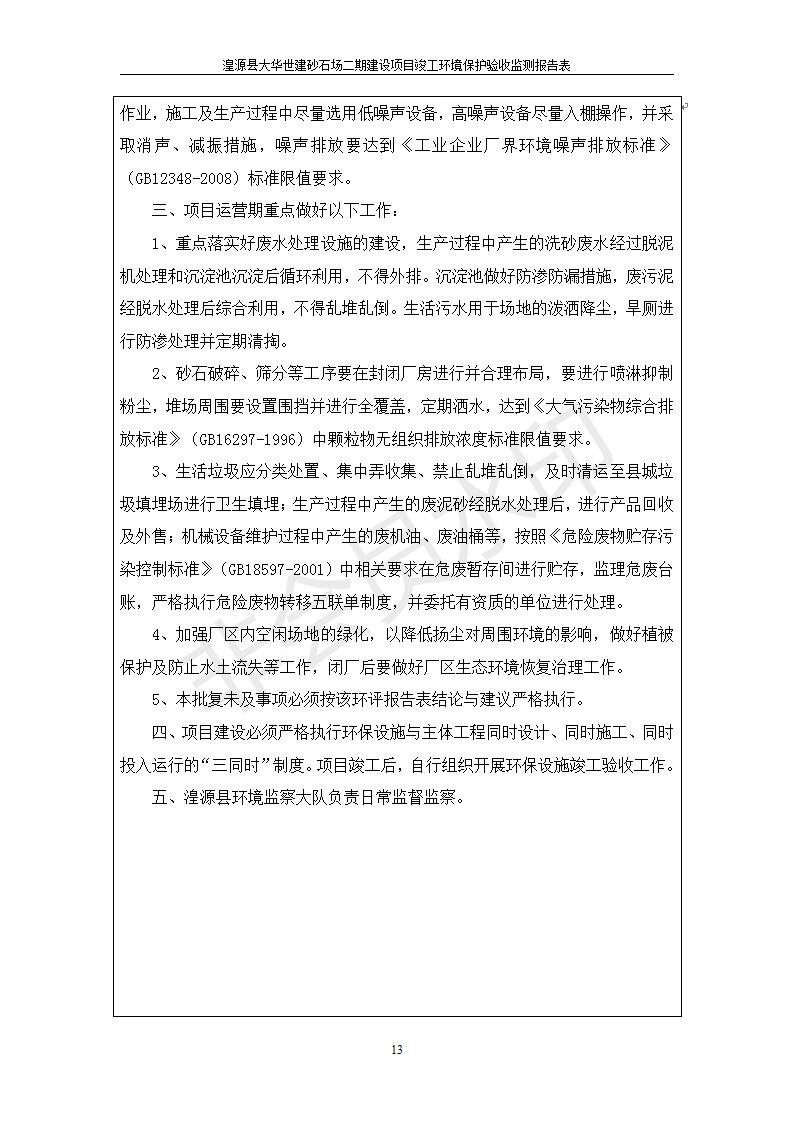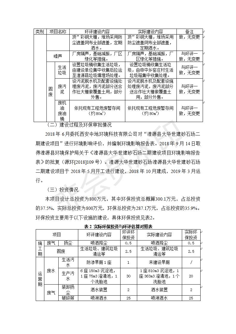 根據(jù)中華人民共和國(guó)國(guó)務(wù)院令第682號(hào)《國(guó)務(wù)院關(guān)于修改〈建設(shè)項(xiàng)目環(huán)境保護(hù)管理?xiàng)l例〉的決定》和《建設(shè)項(xiàng)目竣工環(huán)境保護(hù)驗(yàn)收暫行辦法》(國(guó)務(wù)院令682號(hào)),湟源大華世建砂石場(chǎng)湟源縣大華世建砂石場(chǎng)二期建設(shè)項(xiàng)目(包括竣工環(huán)境保護(hù)驗(yàn)收監(jiān)測(cè)報(bào)告表和驗(yàn)收意見)公示如下。 一、項(xiàng)目名稱:湟源縣大華世建砂石場(chǎng)二期建設(shè)項(xiàng)目 二、地點(diǎn):湟源縣申中鄉(xiāng)窯莊村沙崗大小灣 三、建設(shè)單位:湟源大華世建砂石場(chǎng) 四、建設(shè)內(nèi)容:項(xiàng)目主要建設(shè)砂石料產(chǎn)品加工生產(chǎn)區(qū)、原料堆場(chǎng)、產(chǎn)品堆場(chǎng)、辦公區(qū)等。五、聯(lián)系人:張工 六、聯(lián)系電 話:0971-6515411 七、公示時(shí)間:二〇一九年七月二十五日至二〇一九年八月二十一日公示期間,對(duì)上述公示內(nèi)容如有異議,請(qǐng)以書面形式反饋,個(gè)人須署真實(shí)姓名,單位須加蓋公章。