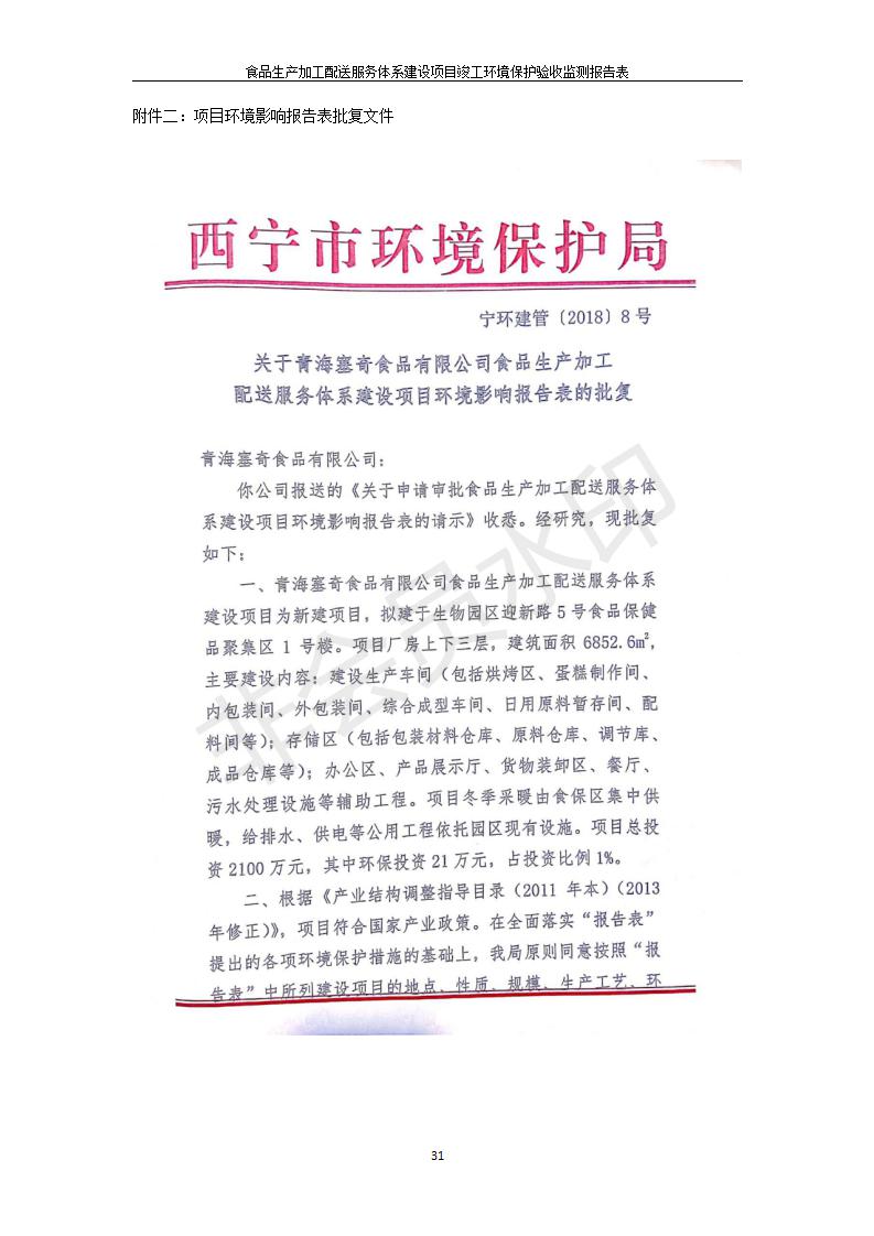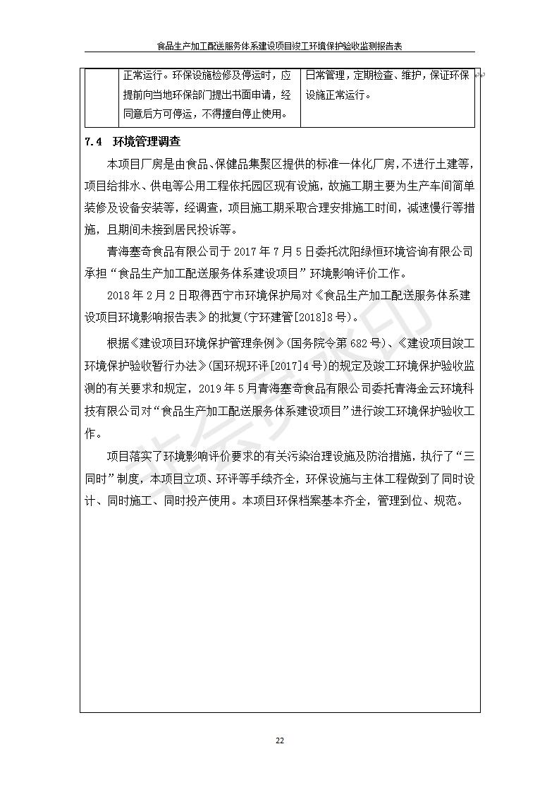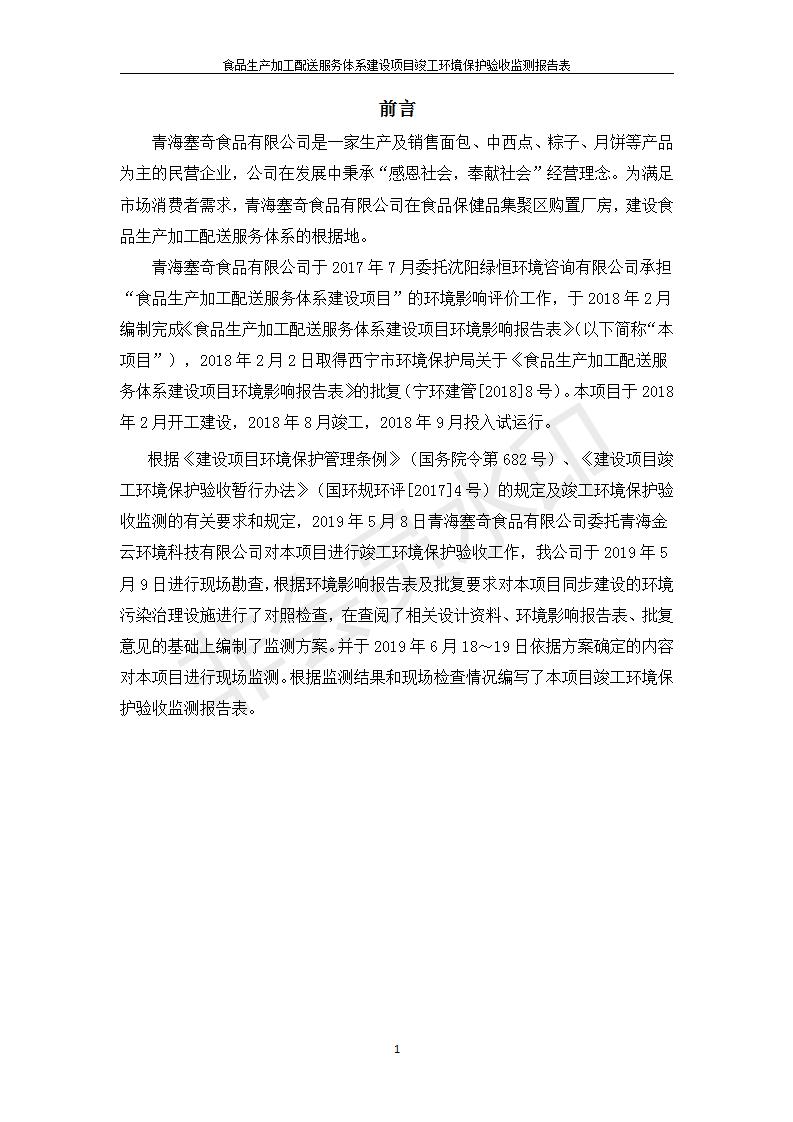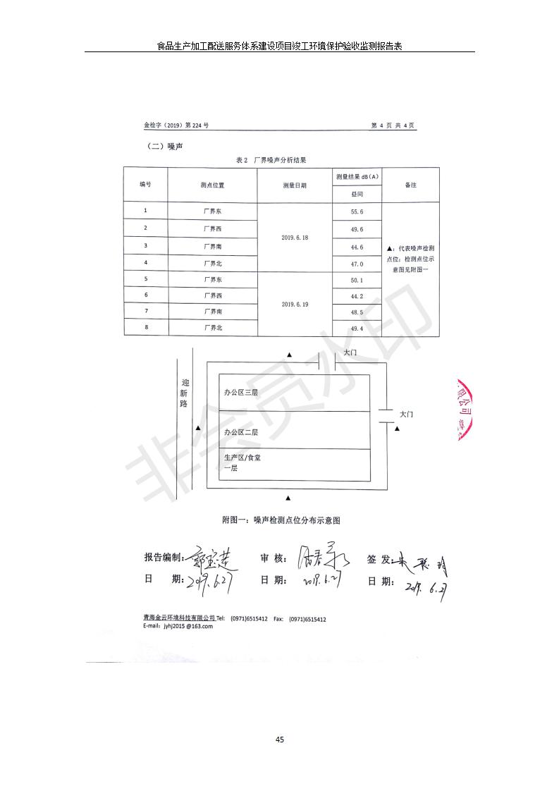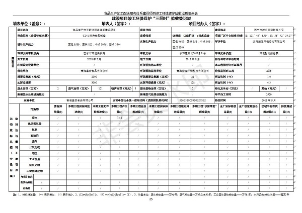 根據(jù)中華人民共和國國務(wù)院令第682號《國務(wù)院關(guān)于修改〈建設(shè)項目環(huán)境保護管理條例〉的決定》和《建設(shè)項目竣工環(huán)境保護驗收暫行辦法》(國務(wù)院令682號),食品生產(chǎn)加工配送服務(wù)體系建設(shè)項目(包括竣工環(huán)境保護驗收監(jiān)測報告表和驗收意見)公示如下。 一、項目名稱:食品生產(chǎn)加工配送服務(wù)體系建設(shè)項目 二、地點:西寧市城北區(qū)生物園區(qū)迎新路5號食品保健品集聚區(qū)1號樓 六、聯(lián)系電 話:0971-6515411 七、公示時間:二〇一九年九月二十日至二〇一九年十月二十二日 公示期間,對上述公示內(nèi)容如有異議,請以書面形式反饋,個人須署真實姓名,單位須加蓋公章。
