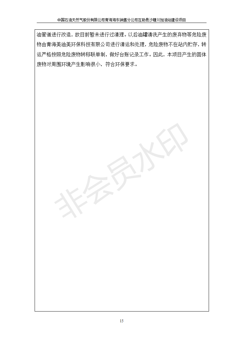 根據(jù)中華人民共和國(guó)國(guó)務(wù)院令第682號(hào)《國(guó)務(wù)院關(guān)于修改〈建設(shè)項(xiàng)目環(huán)境保護(hù)管理?xiàng)l例〉的決定》和《建設(shè)項(xiàng)目竣工環(huán)境保護(hù)驗(yàn)收暫行辦法》(國(guó)務(wù)院令682號(hào)),互助縣沙塘川加油站建設(shè)項(xiàng)目(包括竣工環(huán)境保護(hù)驗(yàn)收監(jiān)測(cè)報(bào)告表和驗(yàn)收意見(jiàn))公示如下。 一、項(xiàng)目名稱(chēng):互助縣沙塘川加油站建設(shè)項(xiàng)目 二、地點(diǎn):互助縣塘川鎮(zhèn)包家口村 六、聯(lián)系電話:0971-6515411 七、公示時(shí)間:二〇一九年九月二十七日至二〇一九年十月二十九日 公示期間,對(duì)上述公示內(nèi)容如有異議,請(qǐng)以書(shū)面形式反饋,個(gè)人須署真實(shí)姓名,單位須加蓋公章。