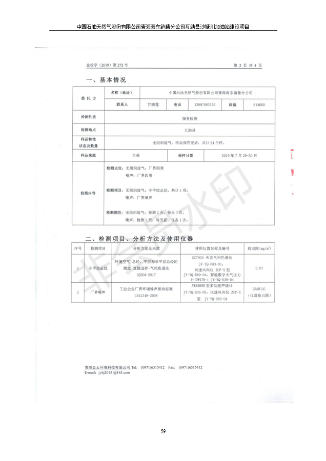互助縣沙塘川加油站建設(shè)項(xiàng)目竣工環(huán)境保護(hù)驗(yàn)收監(jiān)測(cè)報(bào)告表發(fā)布日期:(2019-9-27) 點(diǎn)擊次數(shù):2248 |