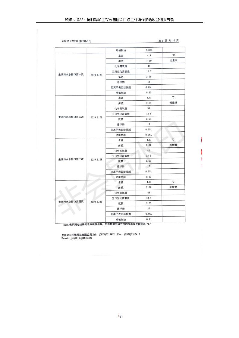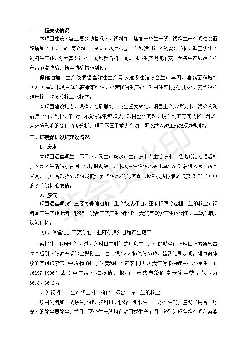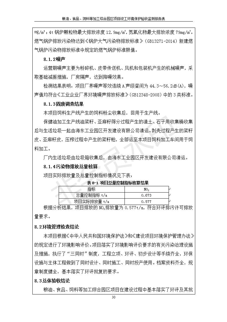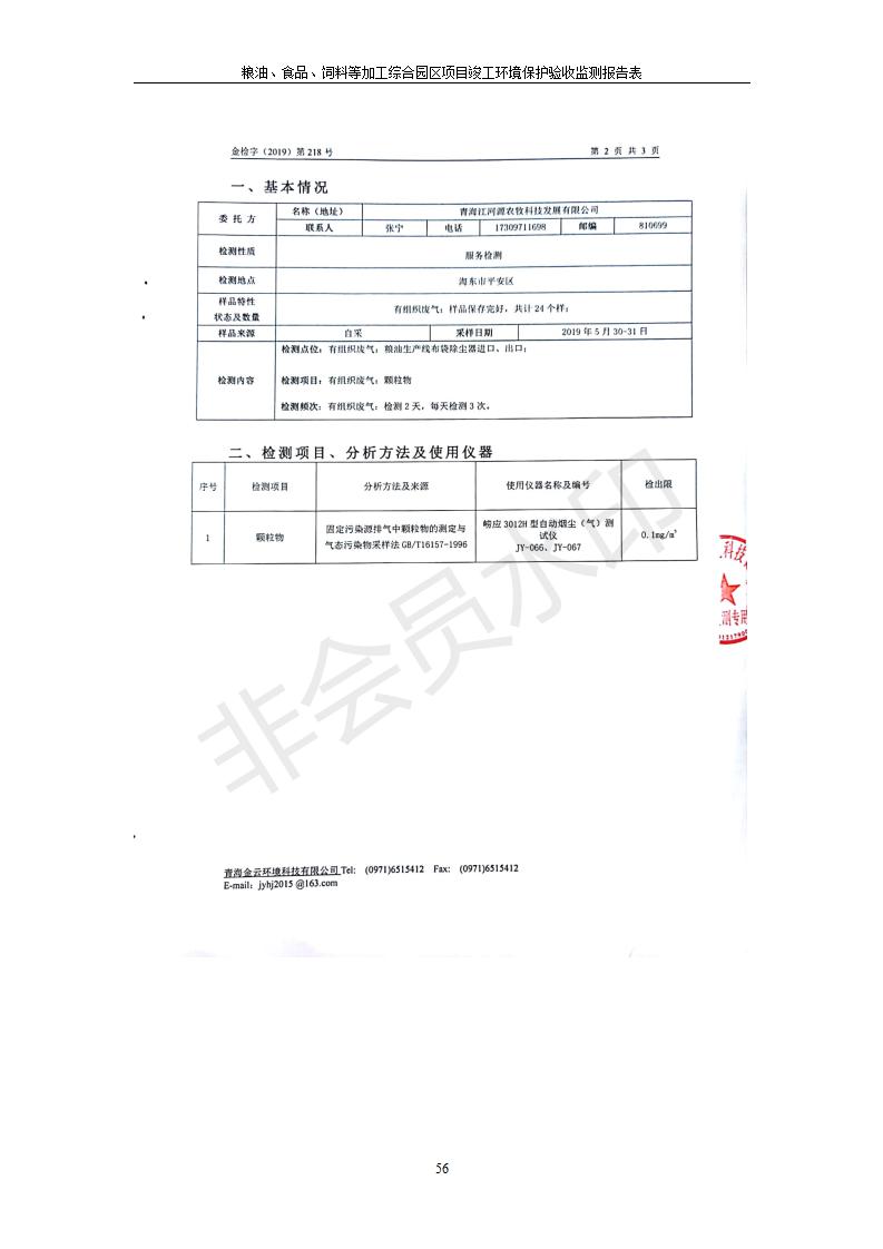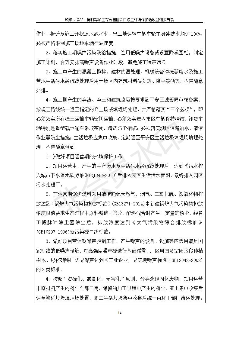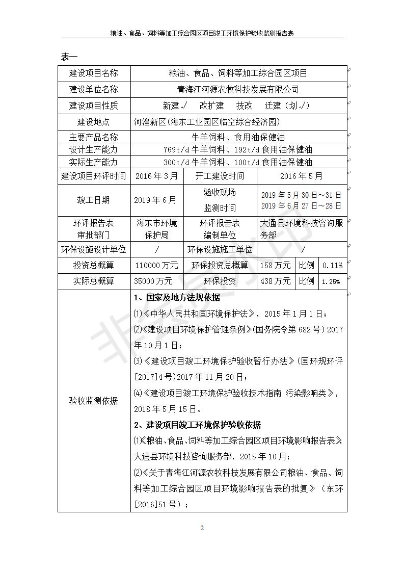 根據(jù)中華人民共和國國務(wù)院令第682號《國務(wù)院關(guān)于修改〈建設(shè)項目環(huán)境保護管理條例〉的決定》和《建設(shè)項目竣工環(huán)境保護驗收暫行辦法》(國務(wù)院令682號),糧油、食品、飼料等加工綜合園區(qū)項目竣工環(huán)境保護驗收監(jiān)測報告表(包括竣工環(huán)境保護驗收監(jiān)測報告表和驗收意見)公示如下。 一、項目名稱:糧油、食品、飼料等加工綜合園區(qū)項目 二、地點:河湟新區(qū)(海東工業(yè)園區(qū)臨空綜合經(jīng)濟園) 六、聯(lián)系電話:0971-6515411 七、公示時間:二〇一九年十月九日至二〇一九年十一月五日 公示期間,對上述公示內(nèi)容如有異議,請以書面形式反饋,個人須署真實姓名,單位須加蓋公章。