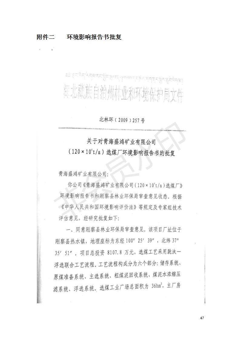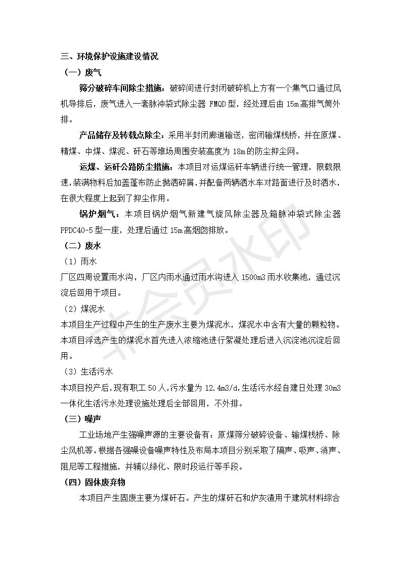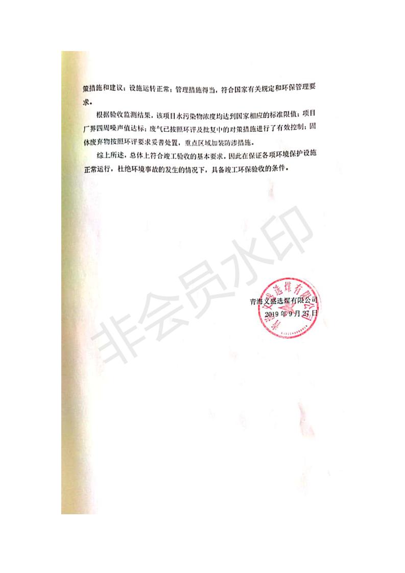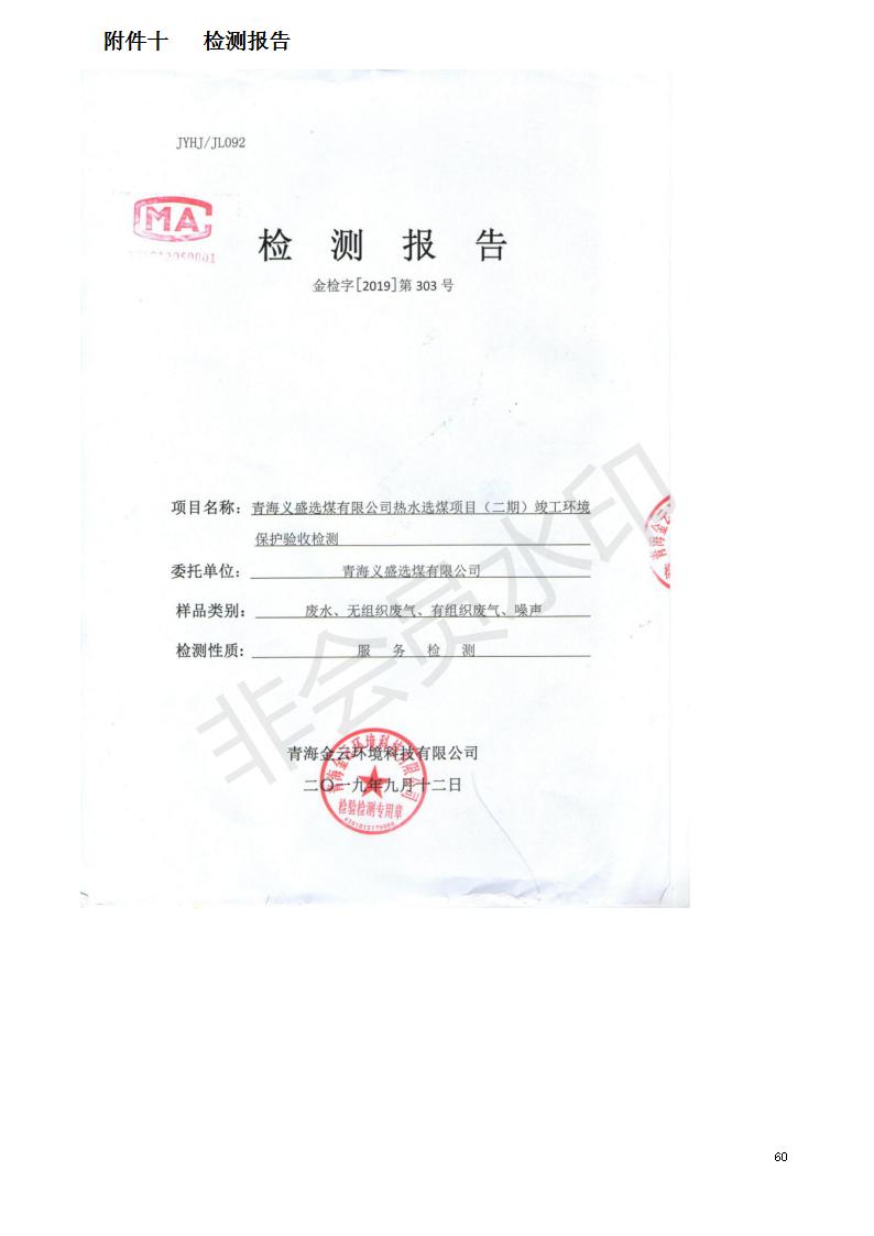 根據(jù)中華人民共和國國務(wù)院令第682號《國務(wù)院關(guān)于修改〈建設(shè)項(xiàng)目環(huán)境保護(hù)管理?xiàng)l例〉的決定》和《建設(shè)項(xiàng)目竣工環(huán)境保護(hù)驗(yàn)收暫行辦法》(國務(wù)院令682號),青海義盛選煤有限公司熱水選煤項(xiàng)目(階段性)竣工環(huán)境保護(hù)驗(yàn)收監(jiān)測報告(包括竣工環(huán)境保護(hù)驗(yàn)收監(jiān)測報告和驗(yàn)收意見)公示如下。 一、項(xiàng)目名稱:青海義盛選煤有限公司熱水選煤項(xiàng)目(階段性) 二、地點(diǎn):剛察縣熱水鎮(zhèn) 此外還包括公用工程系統(tǒng)、消防系統(tǒng)及輔助生產(chǎn)設(shè)施等。 五、聯(lián)系人:張工六、聯(lián)系電話:0971-6515411 七、公示時間:二〇一九年十一月十二日至二〇一九年十二月九日