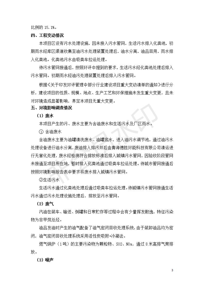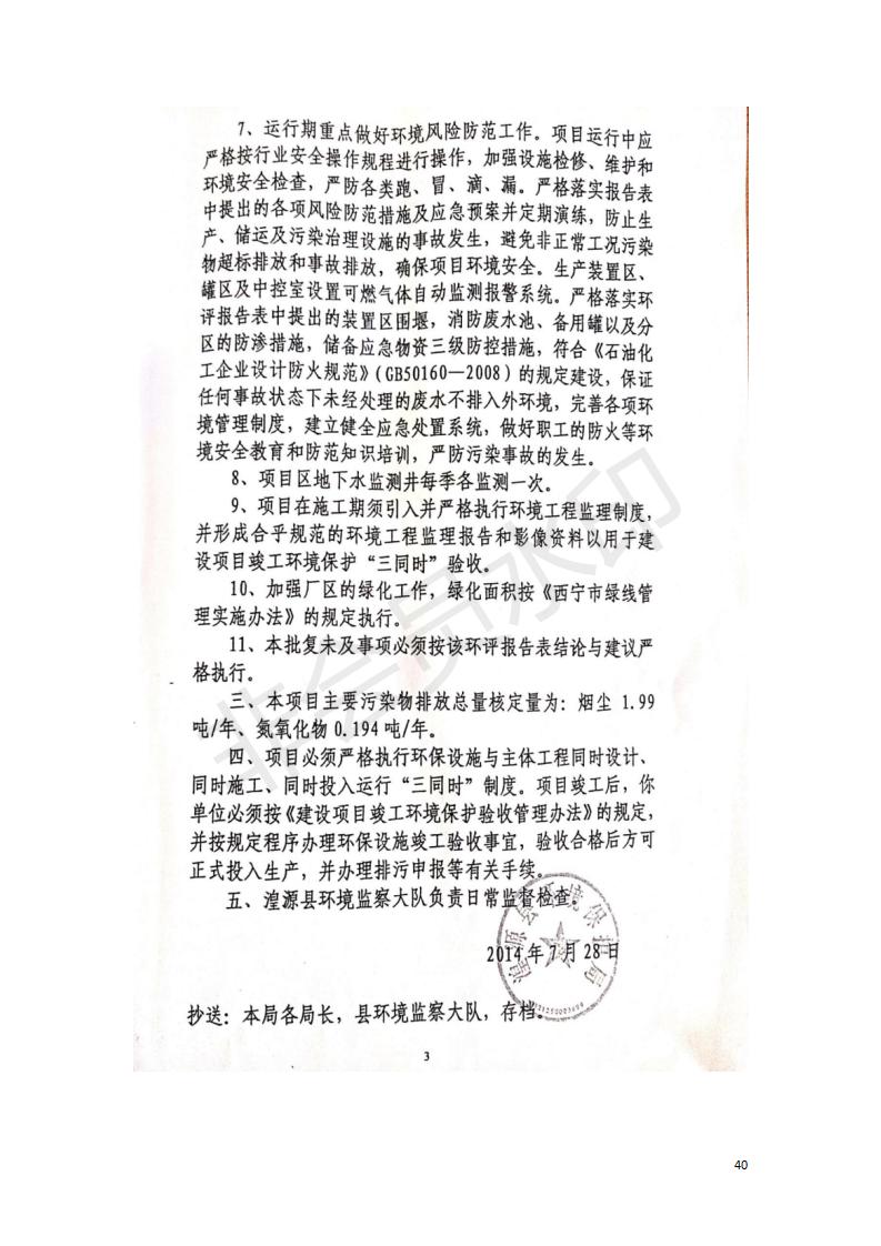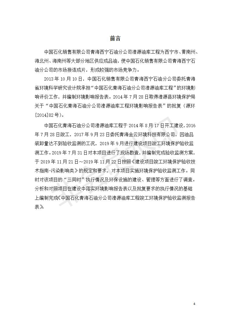 據(jù)中華人民共和國國務(wù)院令第682號《國務(wù)院關(guān)于修改〈建設(shè)項(xiàng)目環(huán)境保護(hù)管理?xiàng)l例〉的決定》和《建設(shè)項(xiàng)目竣工環(huán)境保護(hù)驗(yàn)收暫行辦法》(國務(wù)院令682號),中國石化青海石油分公司湟源油庫工程建設(shè)項(xiàng)目(包括竣工環(huán)境保護(hù)驗(yàn)收監(jiān)測報告表和驗(yàn)收意見)公示如下。 一、項(xiàng)目名稱:中國石化青海石油分公司湟源油庫工程建設(shè)項(xiàng)目 二、地點(diǎn):西寧市湟源縣申中鄉(xiāng)立達(dá)村尕莊臺 三、建設(shè)單位:中國石化銷售股份有限公司青海石油分公司 四、建設(shè)內(nèi)容:油品儲量6萬m3、其他配套設(shè)施。五、聯(lián)系人:董恒棟 六、聯(lián)系電話:18697130811 七、公示時間:二〇二〇年三月十三日至二〇二〇年四月十日 公示期間,對上述公示內(nèi)容如有異議,請以書面形式反饋,個人須署真實(shí)姓名,單位須加蓋公章。